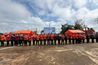 Sinergisitas TNI Polri bersama Pemkab Sanggau Melkukan Apel Gelar Kesiapsiagaan Bencana Batingsor di Halaman Mako Polres Sanggau, pada 13 Oktober 2022 Pagi.