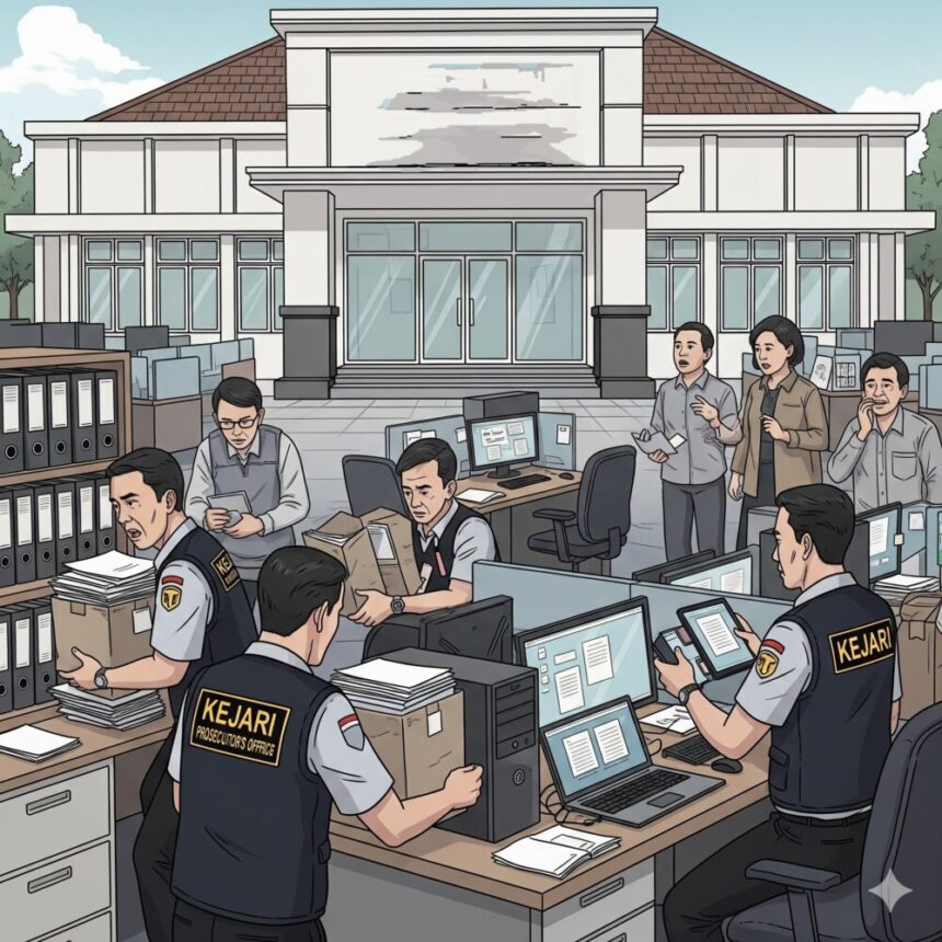 Penggeledahan yang dimulai sekitar pukul 10.45 WIB tersebut dipimpin langsung oleh Kepala Seksi Intelijen, Echo Aryanto, bersama Kepala Seksi Tindak Pidana Khusus, Rasyid Kurniawan, dan jajaran penyidik lainnya.
