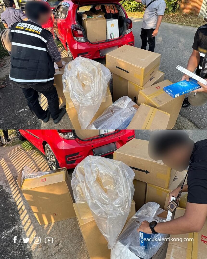Hasilnya, petugas menemukan 22.100 batang rokok ilegal yang disimpan di dalam toko dan di mobil milik sang pemilik.