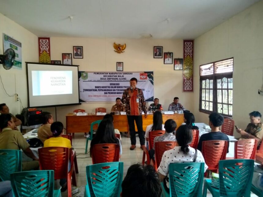 Sanggau, Haloklbar.com — Badan Narkotika Nasional Kabupaten (BNNK) Sanggau terus gencar melakukan edukasi tentang bahaya penyalahgunaan narkoba. Kali ini, BNNK Sanggau menggandeng para pelajar di Desa Empirang Ujung, Kecamatan Balai, Kabupaten Sanggau dalam sebuah kegiatan sosialisasi yang berlangsung pada Selasa, 23 September 2025.
