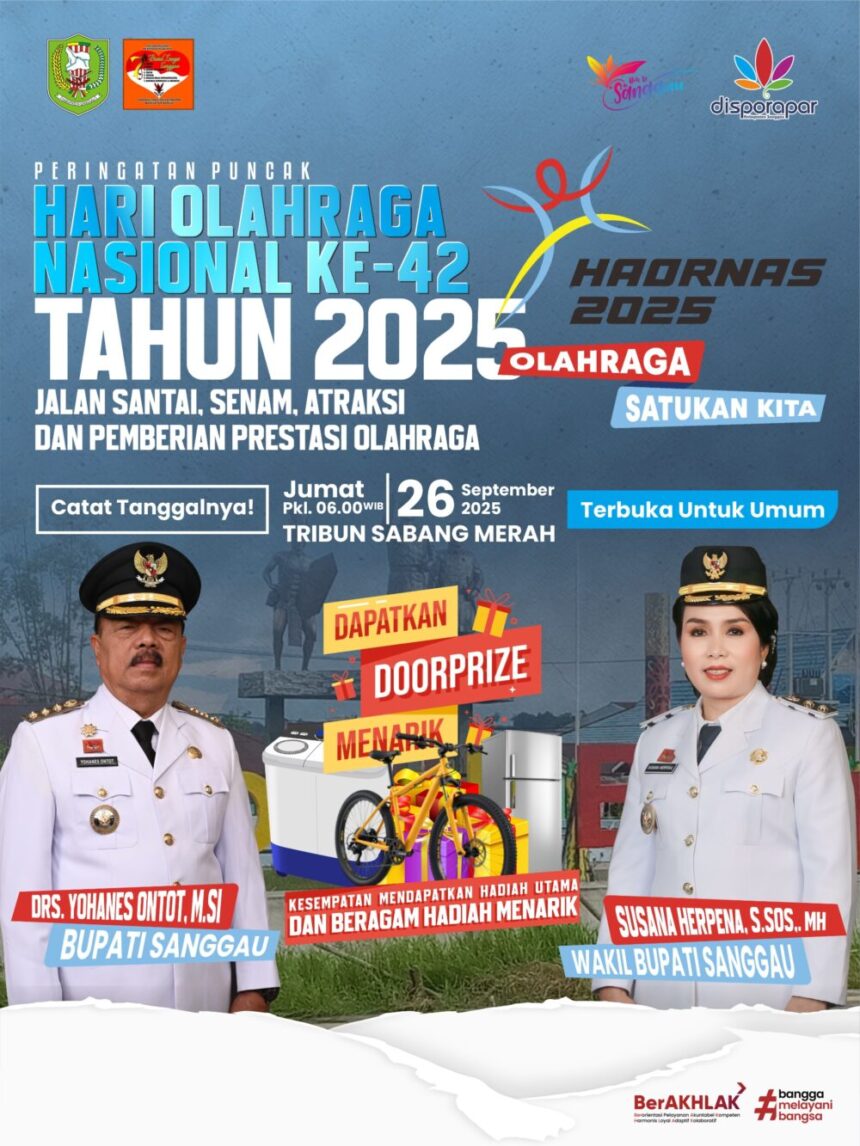 Sanggau,Haloklbar.com – Pemerintah Kabupaten Sanggau bersiap menggelar puncak peringatan Hari Olahraga Nasional (HAORNAS) ke-42 tahun 2025 dengan rangkaian acara yang mengajak seluruh lapisan masyarakat untuk berpartisipasi dan mempromosikan gaya hidup sehat.