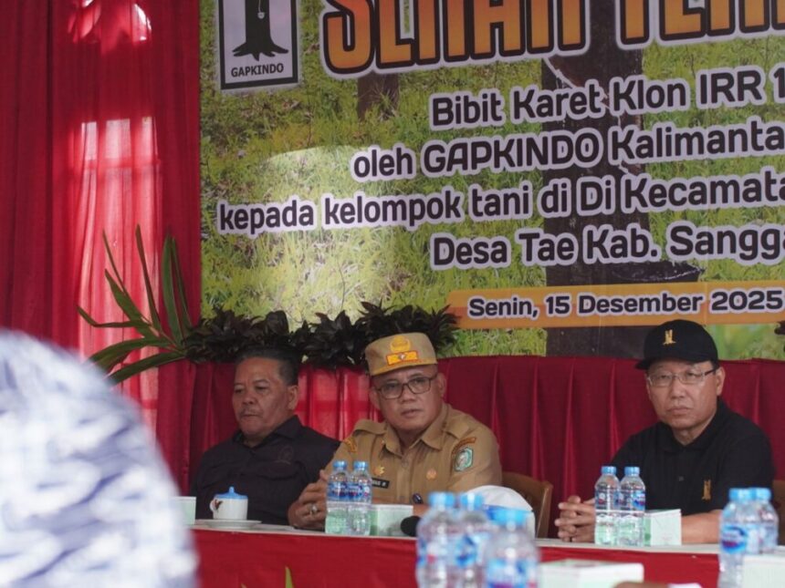 Di bawah kepemimpinan Arif, GAPKINDO menyerahkan bantuan 15.000 bibit karet klon unggul IRR 112 kepada masyarakat Desa Tae, Kabupaten Sanggau, Senin 15 Desember 2025